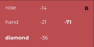 Polje B detektuje: (NEG. RUŽA) sukog, rat i bol. (NEG. RUKA) izostaje vladanje tj. Počinje bezvlašće sukoba, drugim rečima, nema kontrole, svadja sa